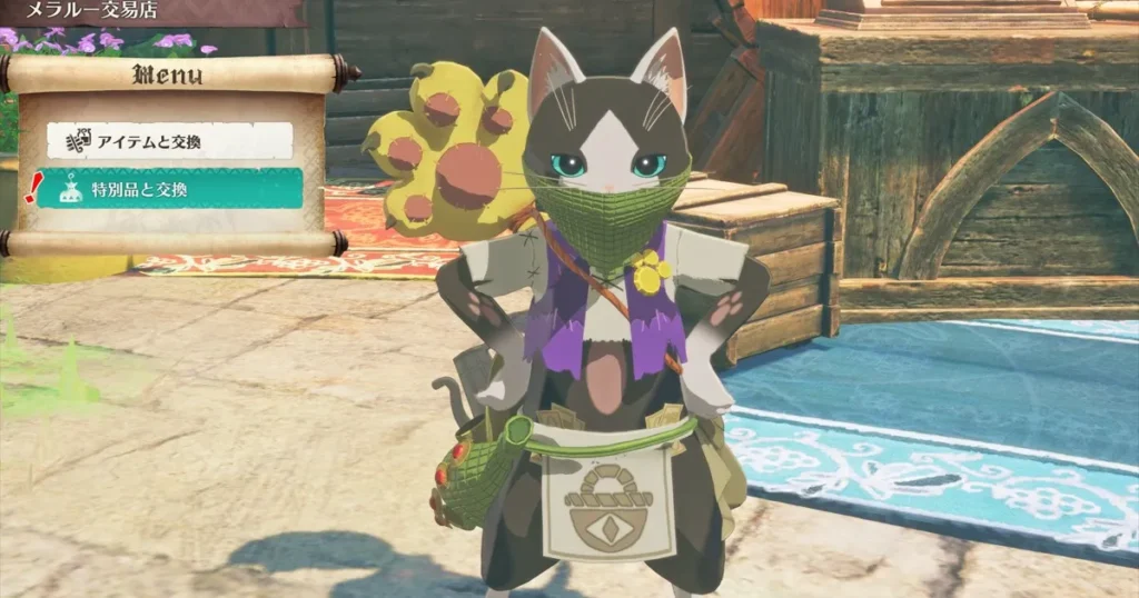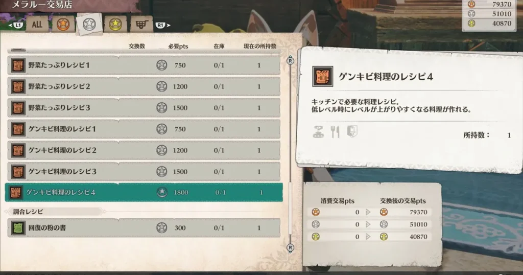 まずはレシピをメラルー交易店で購入しましょう。