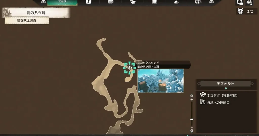 龍の八ツ峰にはストーリーの大瀑布編で必ず行くことになります。その時にネコタクも使えるようにしていればファストトラベルすることができます。