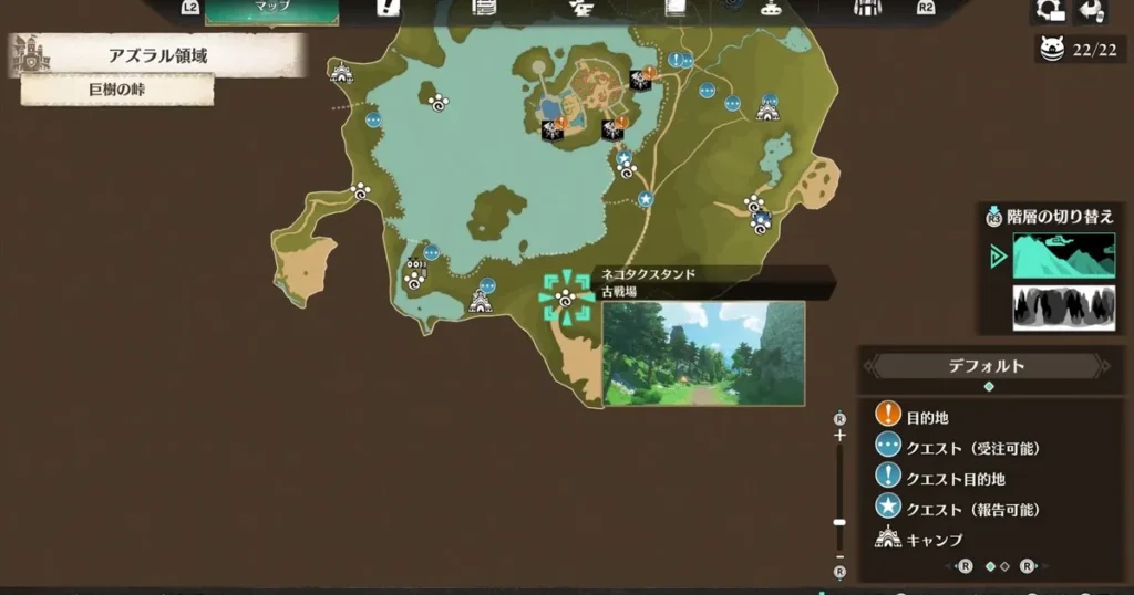 アズラル領域:巨樹の峠にあるネコタクスタンド:古戦場に移動します。